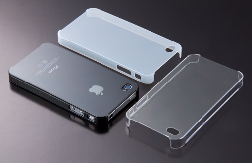 また、iPhone 4のディスプレイ部分から、レール部分をほんの少しだけ前面に飛び出させることで、ディスプレイ面を下に置いたときに傷がつかないようにした。カラーはフォーエバークリア、ミルキーホワイト、スモーキーブラックの3色。