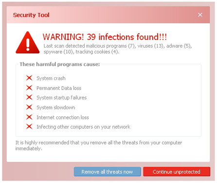 偽のセキュリティソフトの感染報告アラート
