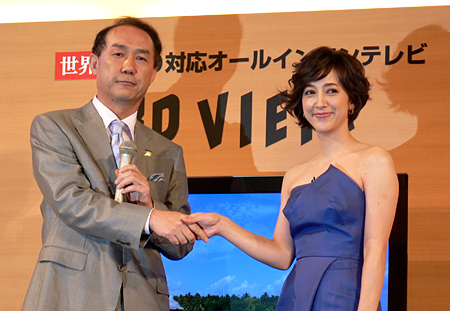 新製品を機に、キャラクターとして現在起用のプロゴルファー・石川遼さんに加え、新たに滝川クリステルさんを起用する。滝川さんとのトークセッションで、西口本部長は、「今年は、家庭用の3Dテレビが登場した3D元年。また、カラーテレビ発売から50年という年でもある。映像文化の歴史の一大転換期として、プロモーションも一新する」としたうえで、「一歩先を行くビエラの先進性を表現するのにふさわしいしい人」と、滝川さんを紹介。これを受けて、滝川さんは「テレビの歴史の転換期である年にキャラクターに選んでいただき、本当に光栄に思う。石川遼君とともに伝えていきたい」と、抱負を語った。