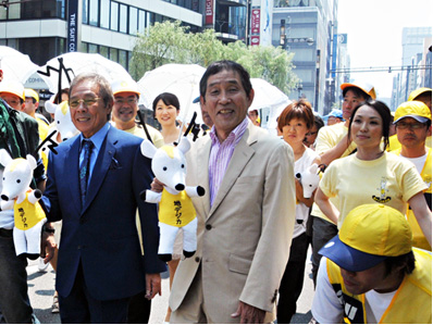 イベント終了後には、草なぎさん、北島さん、萩本さんらを先頭に、参加者が銀座の街をパレード。人々に向けて、地上デジタル放送への完全移行1年前をアピールした。