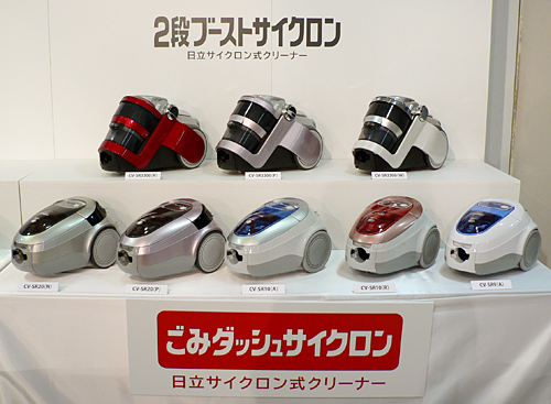 サイクロン式の「ごみダッシュサイクロン」シリーズは、業界No.1の吸込仕事率630Wを達成した高級モデル「CV-SR20」、吸込仕事率620Wで一部機能を絞った「CV-SR10」、吸込仕事率610Wの「CV-SR9」の3機種。実勢価格は、高級モデル「CV-SR20」が5万円前後、「CV-SR10」が4万円前後、「CV-SR9」が3万円前後の見込み。