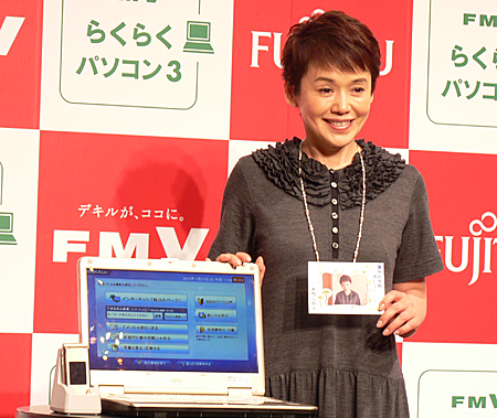 新製品発表会に登場した大竹しのぶさんは、「らくらくパソコン3」に触れ、「ふだんからネットやメール、写真管理などでパソコンを利用しているが、写真入りハガキを作ってみたい。娘はできるけど、私はできないので、ぜひやってみたい」と、感想を語った。また、「わからないことは、電話相談窓口で、わかりやすい言葉を使って教えてくれるので安心」と、専用のサポート体制もアピール。最後に、司会者の「今後の活動予定は?」という質問には、「らくらくパソコンをみんなに広めます!」とコメントし、会場を和ませた。