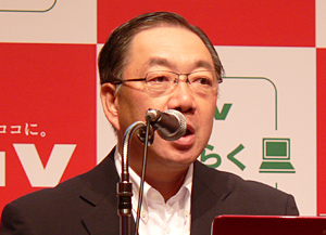 「らくらくパソコン」は、2008年に初代機を、09年にはWindows 7を搭載した二代目を発売。今回は三代目となる。新製品は、これまでの「らくらくパソコン」の「かんたん」「使いやすい」「あんしん」をコンセプトを継承。佐相秀幸・執行役員副社長は、「PCが苦手な人々の障壁になっているネット検索や文字入力の操作性を高めた。デジタルデバイドの解消に答えを出す製品」と説明した。さらに、60-64歳のPC利用率は50%と低い一方で、携帯電話は75%に達していることを背景に、「らくらくホン7」との連携を図ることで、新規ユーザーを掘り起こしていく。