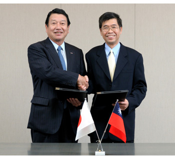 (左から)NTTドコモの山田隆持社長とMing-Kai Tsai取締役会長兼CEO