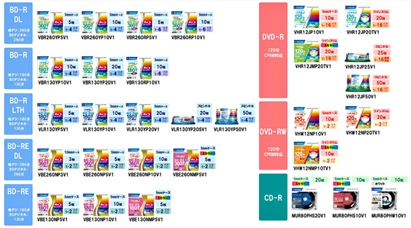 9月に発売する「Verbatim」ブランドの録画用BD・DVD、録音用CDのラインアップ