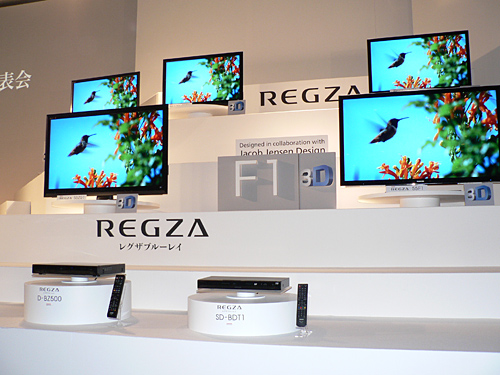 「REGZAブルーレイ」と命名したレコーダーの新製品は、ブルーレイ3Dディスクの再生に対応した「RD-X10」、バージョンアップで対応する「RD-BZ800」「RD-BZ700」「RD-BR600」と、ブルーレイ対応で3D非対応の「D-BZ500」の計5モデル。このほか、ブルーレイディスクプレーヤー「SD-BDT1」も発表した。