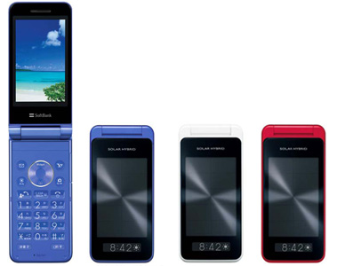 「SoftBank 842SH」は、折りたたみタイプの本体表面にソーラーパネルを備え、太陽光で充電ができる。前モデルから充電効率が向上し、約10分間の太陽光の充電で2分間程度の通話ができる。IPX5/IPX7相当の防水性能、IP5X相当の防じん性能を備えているので、バスルームやキッチンなどでも安心して通話やメールができる。