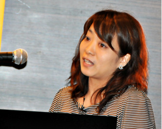 新製品の機能を説明する風間彩・コンシューマ事業部門・リージョナル プロダクト マーケティング シニアマネージャ