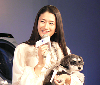発表会には、イメージキャラクターの小雪さんが登場。部屋のハウスダストや空気に気を配っているという小雪さんは、「空気清浄と加湿はマストアイテム」とコメント。愛犬と一緒に暮らしているので、とくに気をつけているという。愛犬「ソイ」の代わりに連れてきたという親戚のシュナウザー犬「ロク」を紹介した後、「ナノイーは、大切な人が快適に過ごすための商品がたくさんある。使って、体験していただきたい」とアピールした。