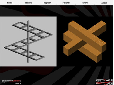 静止画が動いているように見えたり、あり得ない建築物がそれらしく描かれていたりと、トリックアートをまとめたのが「Eye Illusions HD」。デジタルが苦手な人に見せるときに、写真集のように使える。