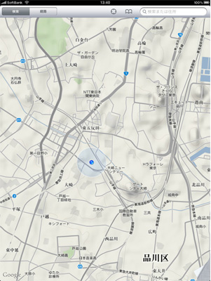 マップは画面が広くなったおかげで、地図帳のように使える。iPhoneでは、目的地や現在位置の近くしか表示できず、広範囲を表示すると細かい道が見えなくなっていた。その点、iPadなら、広範囲を詳細表示できるので、目的地までの道順が一目瞭然だ。マップと航空写真のほか、地形表示もできるようになった。