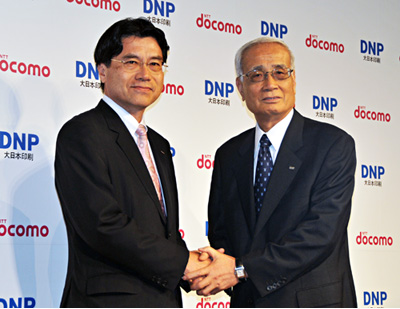 NTTドコモ(山田隆持社長)と大日本印刷(DNP、北島義俊社長)は、8月4日、携帯端末向けの電子出版ビジネスでの業務提携を発表した。コンテンツ収集から配信、電子書店の運営までを一貫して手がける電子出版サービスを、今秋から提供する。凸版印刷、ソニー、朝日新聞社と組むKDDIや、iPadを販売し、グループ会社でコンテンツ配信サービス「ビューン」を提供するソフトバンクモバイルに続き、大手通信会社の参入となる。