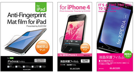 エレコム、マットタイプのiPad/iPhone/Xperia用指紋防止フィルムなど