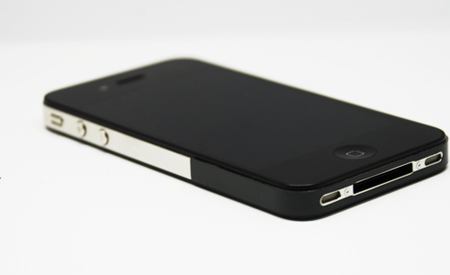 アンテナの受信状態を高める「アンテナ強化シール」を貼ったiPhone 4