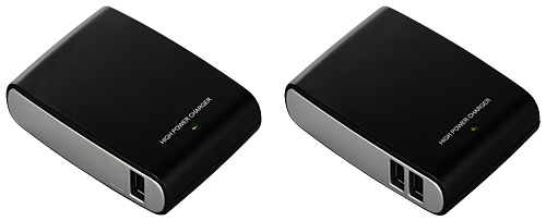 iPad/iPhoneの急速充電に対応する2A仕様のUSB充電器(左はBSIPA07BK、右はBSIPA08BK/BSIPA09BK)