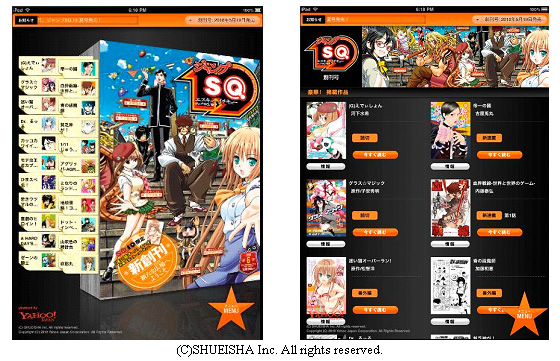 ヤフーは、集英社が発行する月刊漫画雑誌『ジャンプSQ.19』をiPad用のアプリケーションとして、8月19日に提供を開始する。