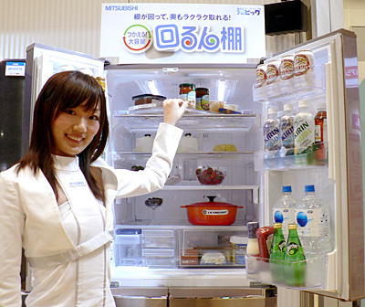 冷蔵庫「EX/Eシリーズ」には手が届きにくい最上段の棚に回転棚「回るん棚」を搭載
