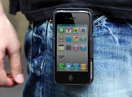 iPhone 4をシェルケースと、クリップ付きのホルスターケースに収納することで、ポケットやベルトに装着できる。シェルケースは、iPhone 4のスリープボタンやボリュームボタン、カメラなどの部分に合わせてカットし、操作の邪魔にならない。背面には、携帯ストラップなどを取り付けるストラップホールが付いている。