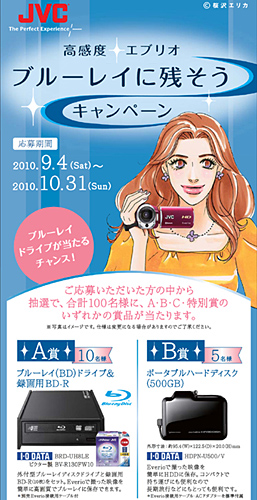 日本ビクター、Everio購入でBDドライブやポータブルHDDが当たるキャンペーン