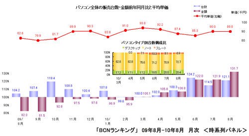 BCN、PCは台数・金額で二桁増、デスクは好調、ノートはネットブックに陰り
