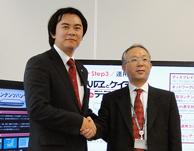 サイバーステーションでは、「デジサイン」で配信店舗サーバー(NAS)、配信端末(STB)にアイ・オー・データ機器の製品を採用していることから、「今後はTVチューナーやRFIDなど、新たな分野でアイ・オー・データとサービスを共同で開発したい」(福永社長)としている。