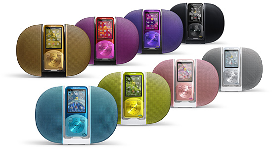 「NW-S750Kシリーズ」は、総合出力2Wで本体に合わせたデザインの専用スピーカーが付属。スピーカーに本体をセットしたまま充電や再生を行うことができる。ウォークマン本体の充電池を利用してスピーカーを駆動させ、屋外など、コンセントのない場所で音楽を聴くことも可能。音楽の連続再生時間は通常時で約50時間、デジタルノイズキャンセリング機能使用時は約40時間。