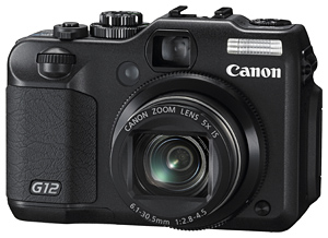 「PowerShot G12」は、有効約1000万画素のCCDと映像エンジン「DIGIC 4」を組み合わせた「HS SYSTEM」を採用した上級者向けモデル。夜景や室内などの暗いシーンの撮影に強い。焦点距離が28-140mm相当(35mmフィルムカメラ換算)の光学5倍ズームレンズを搭載する。最短1cmまで被写体に近づいたマクロ撮影ができる。