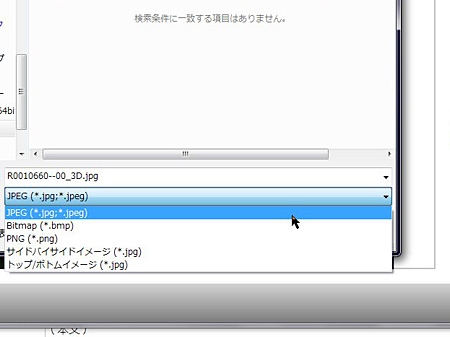 画像の保存を行う。保存形式は3D アナグリフ以外にも、サイドバイサイドイメージやトップ/ボトムイメージなどが選べる