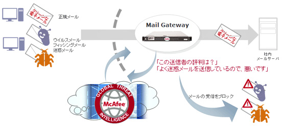 このように、迷惑メールの受信を可能な限り削減することで、内容の疑わしいメールの確認に、機器のリソースを割り当てることができる。