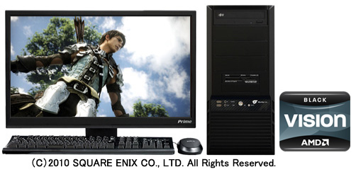 スクウェア・エニックスが規定する動作検証をクリアし、「ファイナルファンタジー XIV Windows版動作認定プログラム 推奨認定」を受けたゲーミングPC。AMDがハイエンドゲームや大容量の映像・データをスムーズに処理できる製品に付与するロゴ「VISION Black」に対応する。