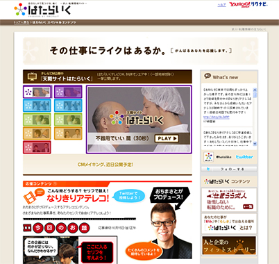 特設ページでは、音楽をいきものがかりが担当し、一部地域でオンエア中のテレビCM「天職サイトはたらいく」を公開。近日中に、CMのメイキング映像も公開する予定。