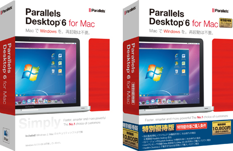 「Parallels Desktop 6 for Mac」通常版(左)、特別優待版