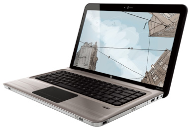 15.6型ワイドの「HP Pavilion Notebook PC dv6 Premium」は、トップカバーとパームレストにアルミニウム素材を使用。ヘアライン加工のなかに、デザインパターンを施した。
