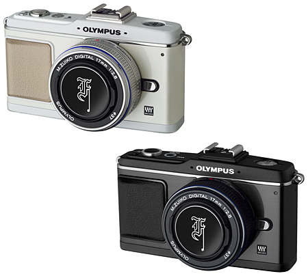 「OLYMPUS PEN E-P2 プレミアムキット」は、「E-P2」のボディに、「F」の花文字入りレンズキャップ「LC-37F BLK」を装着した単焦点レンズ「M.ZUIKO DIGITAL 17mm F2.8」と、プロテクトフィルター「PRF-D37」を組み合わせたもの。レンズの焦点距離は34mm相当(35mmフィルムカメラ換算)。カラーはホワイトとブラック。
