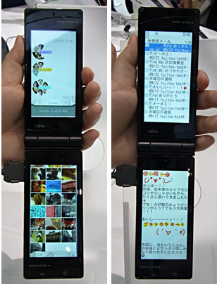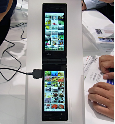 【CEATEC JAPAN 2010】富士通、二つのタッチパネルを操るケータイを参考出展