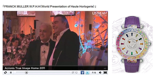 今回のUstream中継は、フランク・ミュラーとして初の取り組みで、Ustream中継のアーカイブや現地レポート、フランク・ミュラーに関する情報を提供するキャンペーンページも開設した。
