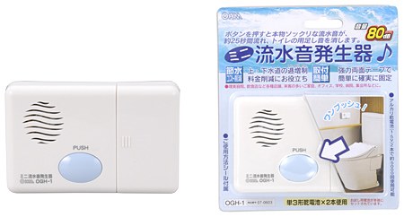 オーム電機は、トイレの節水に役立つ電池式のトイレ用擬音発生装置「ミニ流水音発生器 OGH-1」を、10月29日から量販店で本格販売する。価格はオープンで、実勢価格は1000円前後の見込み。