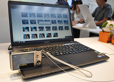 コンパクトデジカメをセンサにかざしてPCに写真を転送(PCはソニーの「VAIO VPCF11AF」)