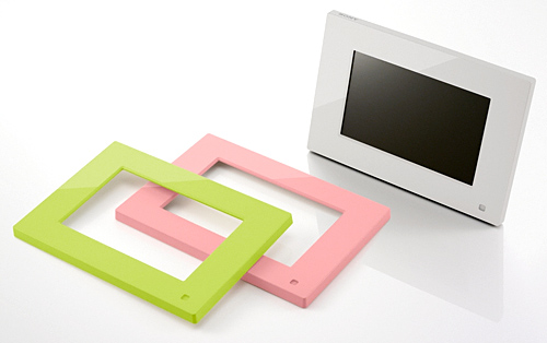 「DPF-E710」は、好みやインテリアなどに合わせて、ホワイト、パールピンク、ライムグリーンの3色のフレームを着せ替えることができるギフト向けモデル。出荷時のフレームはホワイト。画面サイズは7.0型で解像度は480×234。
