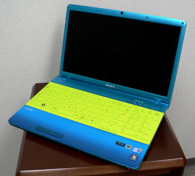 「VAIO Eシリーズ(ブルー)」とキーボードウェアのグリーンとの組みわせ