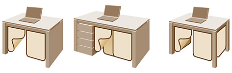 付属のマジックテープでデスクの下にカーテン状に取り付ける専用ブランケット「FHB1」を、11月30日に発売する。「うらぽか」で暖まった空気が漏れず、デスクの下全体を暖めることができる。価格は3129円。洗濯ができるフリース生地に消臭加工を施した。