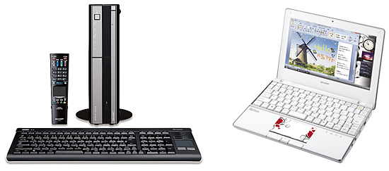 デスクトップPC「インターネットAQUOS」(PC-AX120V)とノートPC「Mebius」(C-NJ80A-W)