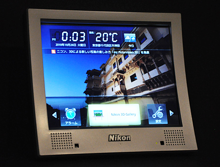 「NF-300i」は、裸眼で3D写真を見ることができるデジタルフォトフレーム。画面上に配置するレンズから、右目用と左目用の映像をそれぞれ出力することで立体視する「レンチキュラー方式」だ。解像度800×600の7.2型液晶を搭載。3D写真を見る最適な距離は約1m。3Dだけでなく2Dの写真も表示でき、ともに同じ解像度で表示する。