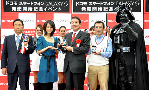 NTTドコモは10月28日、OSにAndroidを採用したサムスン電子製のスマートフォン「GALAXY S SC-02B」の発売記念イベントを、東京・秋葉原のヨドバシカメラ マルチメディアAkibaで実施した。ゲストには、CMでおなじみのダース・ベイダーのほか、イメージキャラクターの堀北真希さんが登場し、盛り上がりをみせた。
