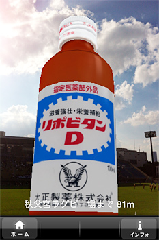 秩父宮ラグビー場に巨大なリポビタンDが! iPhoneアプリ「リポビタンD AR」