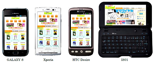 対応するAndroid端末は、NTTドコモの「Xperia SO-01B」「GALAXY S SC-02B」「LYNX SH-10B」、ソフトバンクモバイルの「HTC Desire X06HT」、auの「IS01」。このほか、今後発売される主要Android端末にも対応する予定。
