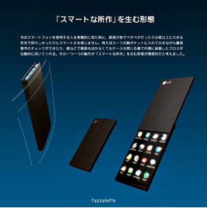 「Realistic部門」でゴールド賞を受賞した江口海里さんの「fazzoletto」は、従来の大きなスマートフォンは使うさまがとても仰々しく、タッチパネルは指で触るのでベタベタし、客観的に見てあまりスマートだと思えないことから、胸ポケットに入れて着信番号を確認できる上向きのサブディスプレイを採用。服などで拭かなくてもキレイな画面を保つために、スライド式のフタにディスプレイクロスを装備し、スマートフォンを使うときの「スマートな所作」を生み出すデザインを提案した。