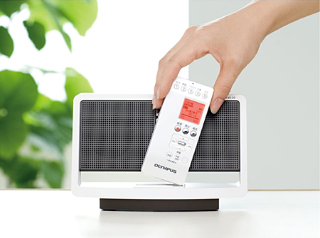 FM/AMラジオを聞くことができるICレコーダー。ラジオ番組は最大20番組までの予約録音に対応する。設定は「1回」「毎日」「曜日指定」の3パターン。付属のクレードル型スピーカーを使えば、外出先だけでなく自宅でもラジオを楽しめる。スピーカーの電源はACアダプタで、本体を充電することができる。