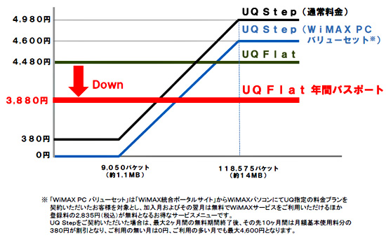 UQ、月額3880円のWiMAX定額プラン「UQ Flat 年間パスポート」、1年間の継続利用で
