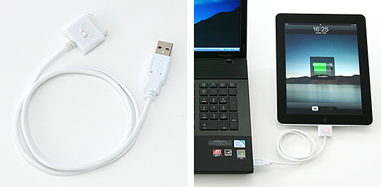 普通のパソコンのUSBポートからiPadを充電、「iPad充電&同期ケーブル 500-USB008」